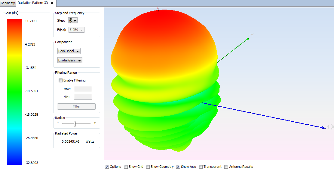 Figure 4. 3D radiation pattern - Step 4: 5.0e9 Hz