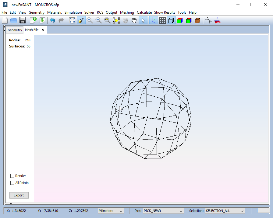 This option can be chosen by the user to load and render a mesh file. Mesh files are generated by the mesher provided with newFASANT and usually end by .msh.