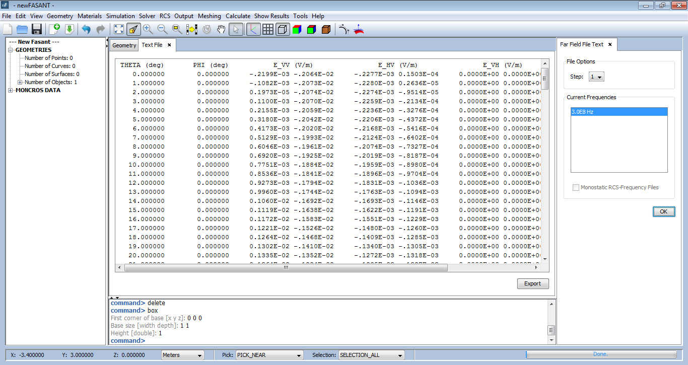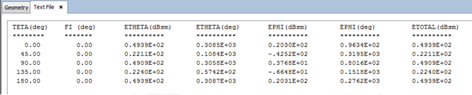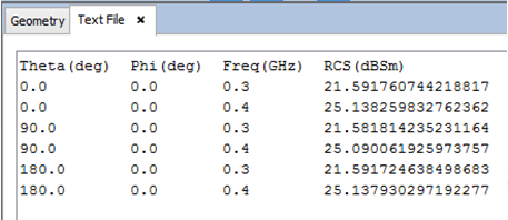 Figure 3. Viewing RCS-Frequency cuts data in text format