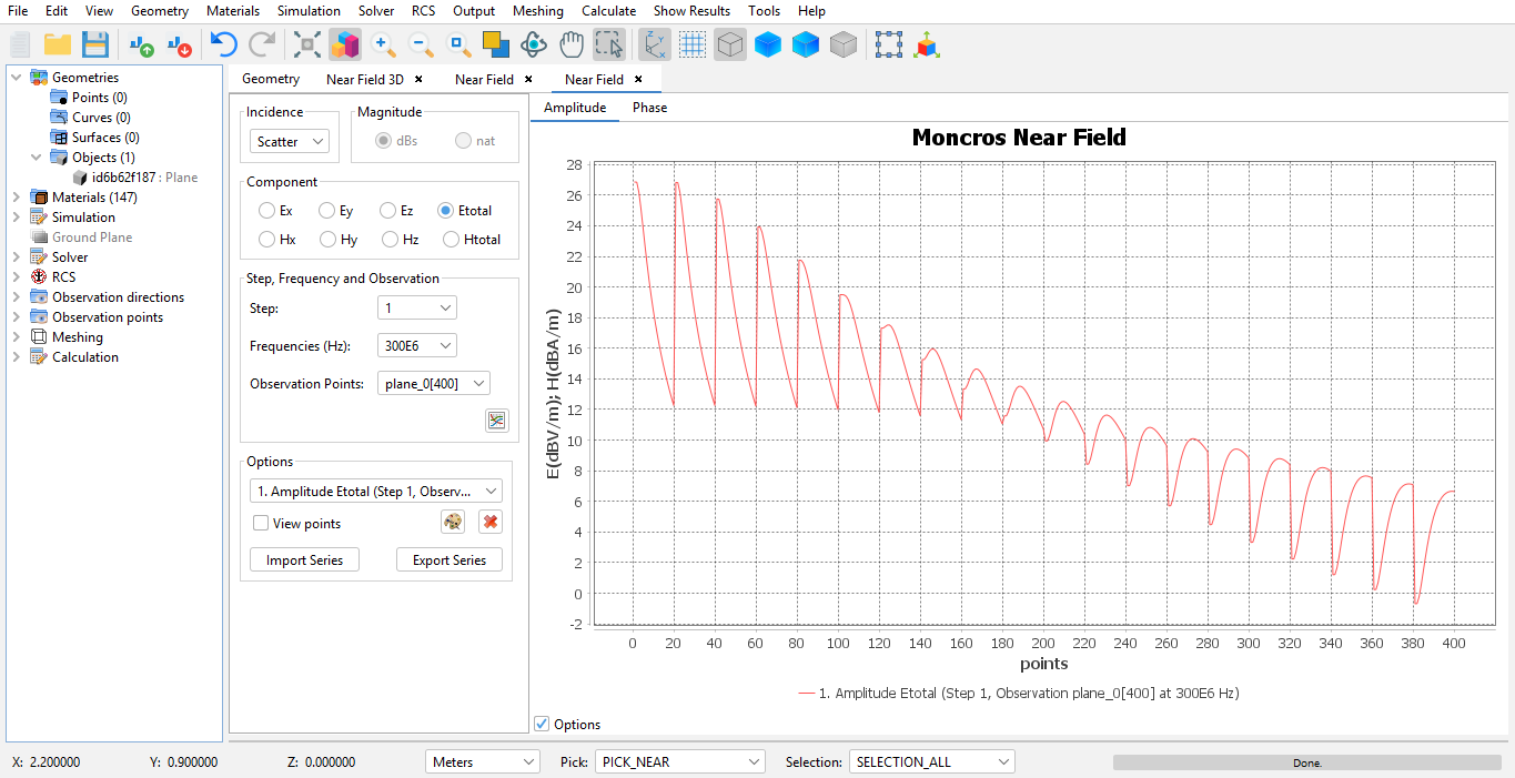 • Observation points: on simulation projects that make use of multiple observation point structures, the user can select one of the geometries.