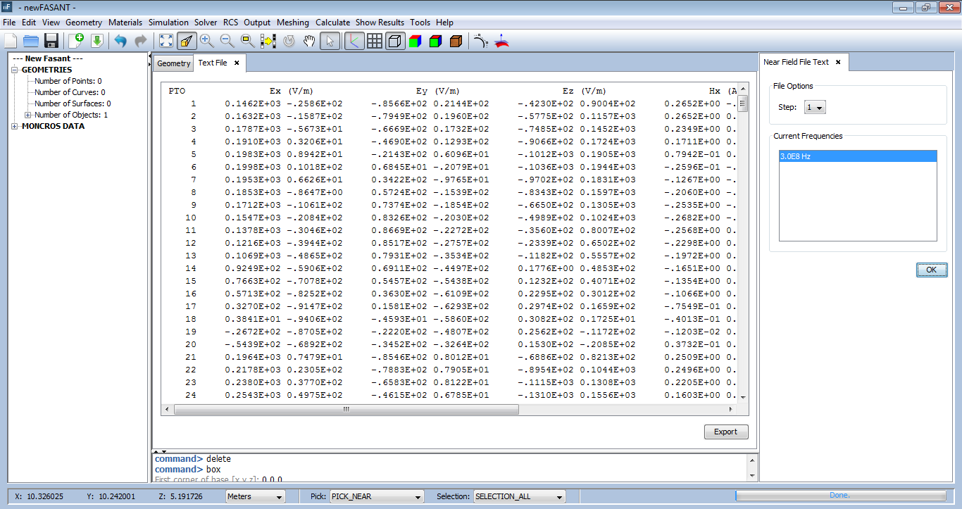 Figure 1. Viewing near field values in text format