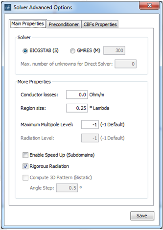 Figure 10. Advanced parameters of solver, 'Main Properties' tab