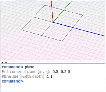 The command line panel requires some parameters at this point. Enter “-0.5 -0.5 0” as