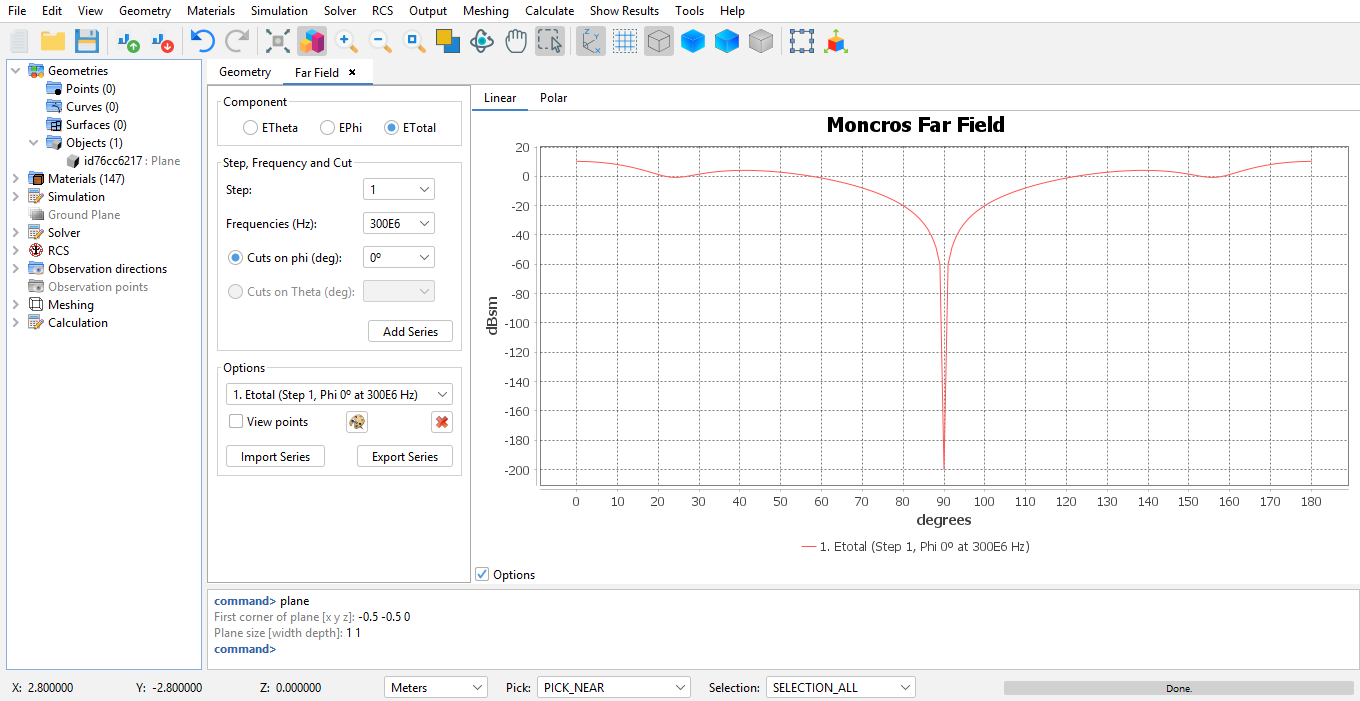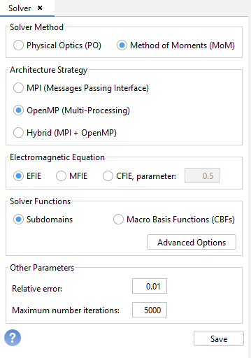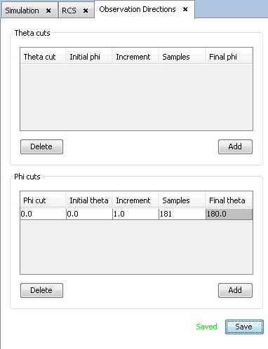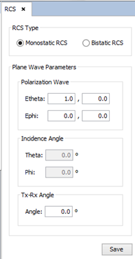 Select Monostatic RCS and leave the default parameters. Press the Save button.