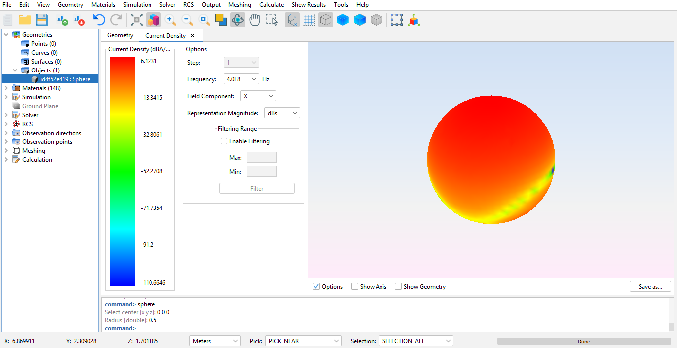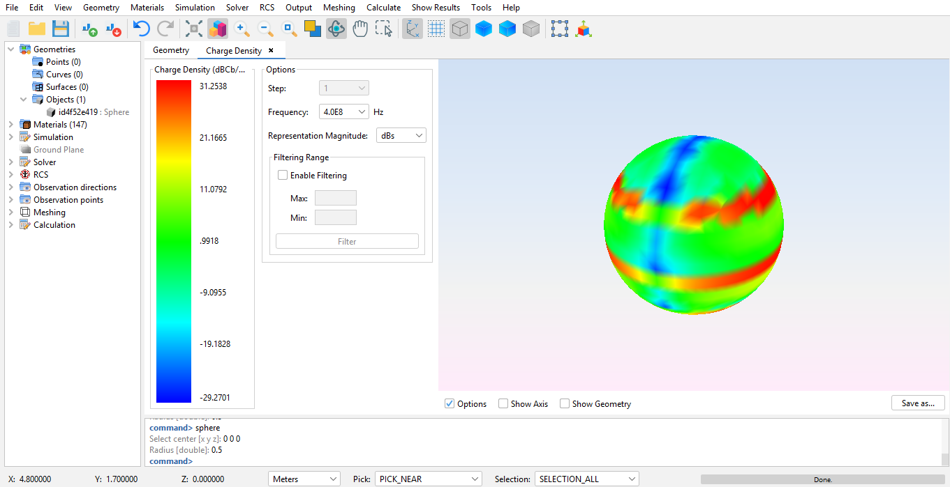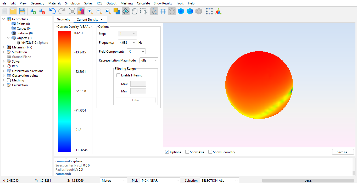 Initially, only the RCS for the first sampled frequency will be plotted. The user can