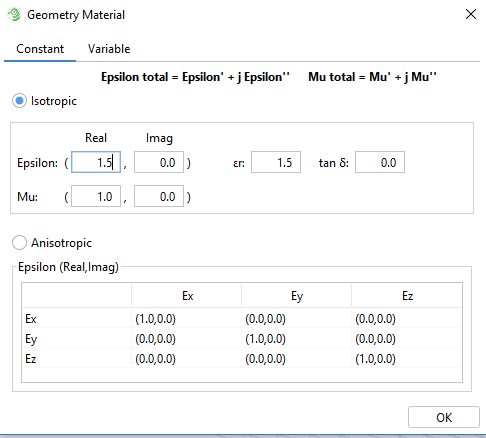 Select Material defined by Geometry option and press the Set Parameters button, to