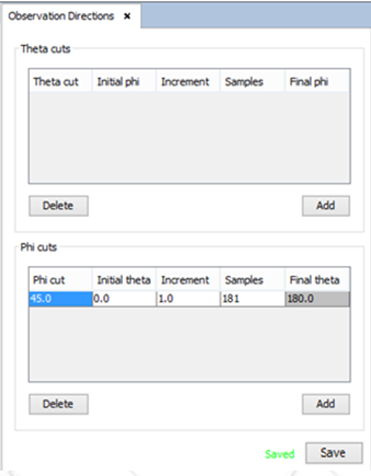 Select the Output → Observation Directions option. Modify the existing phi cut and
