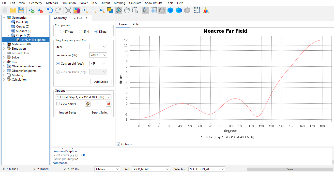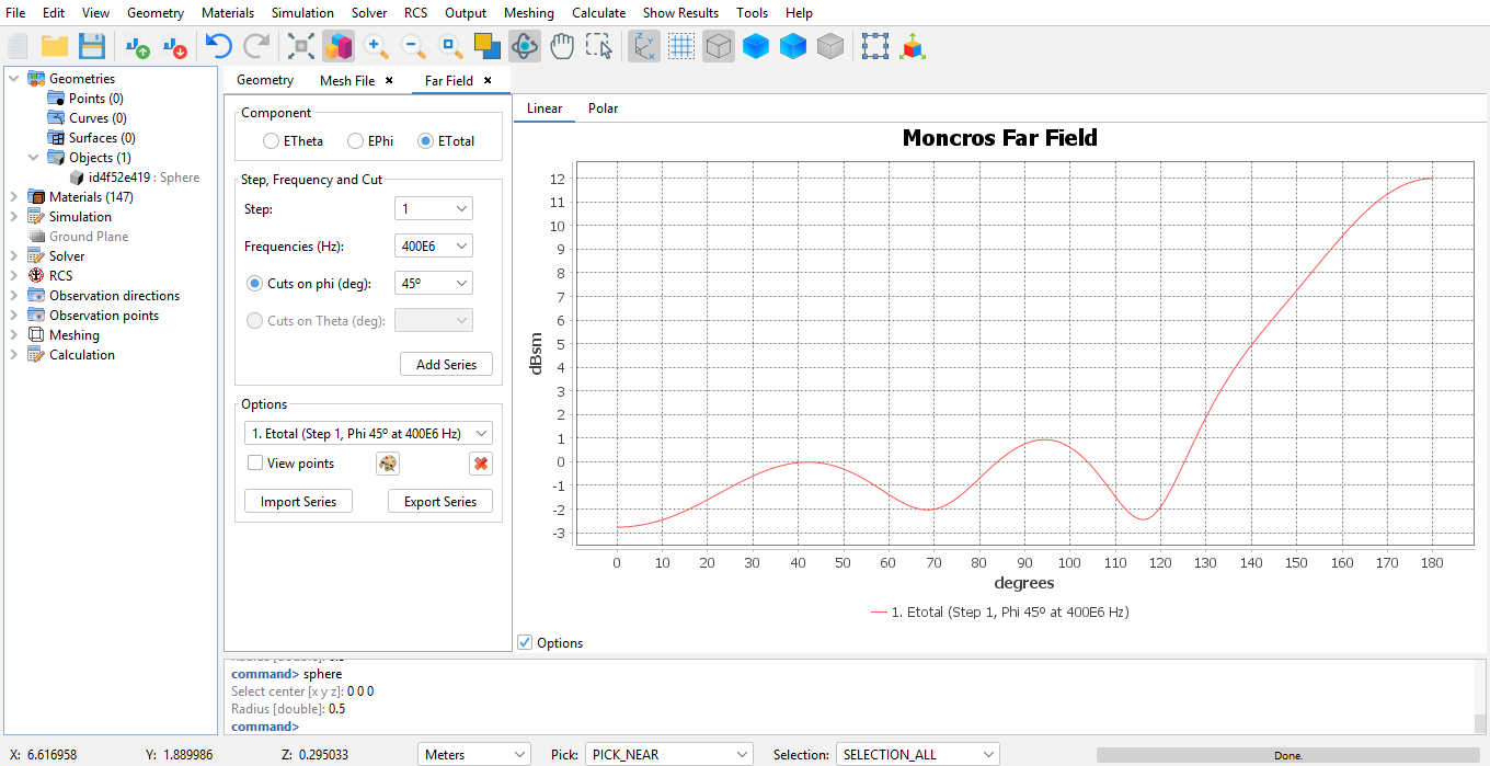 In this example, we will calculate the bistatic RCS of an imported geometry using a