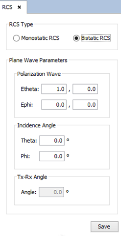 Select the RCS → Parameters option. In the panel that appears, select the Bistatic