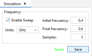 Select the Simulation → Parameters option. Enable the Frequency Sweep option and set