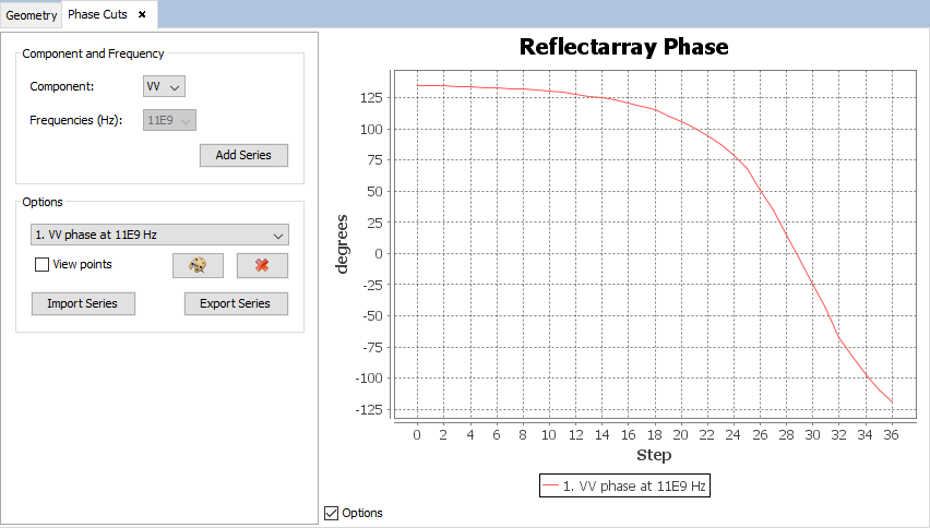 Set the initial frequency to 11 GHz, the final frequency with default values and the frequency samples set to 1. This options allows to configure a frequency sweep to analyze the cases for different frequencies. For this case only 11 GHz will be analyzed.