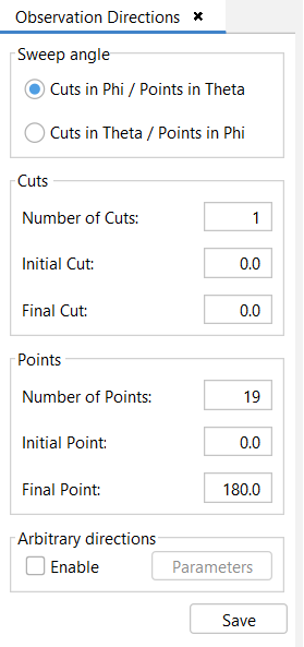 - Cuts in Phi / Points in Theta: the user selects to compute cuts in Phi and angular sweeps in Theta.