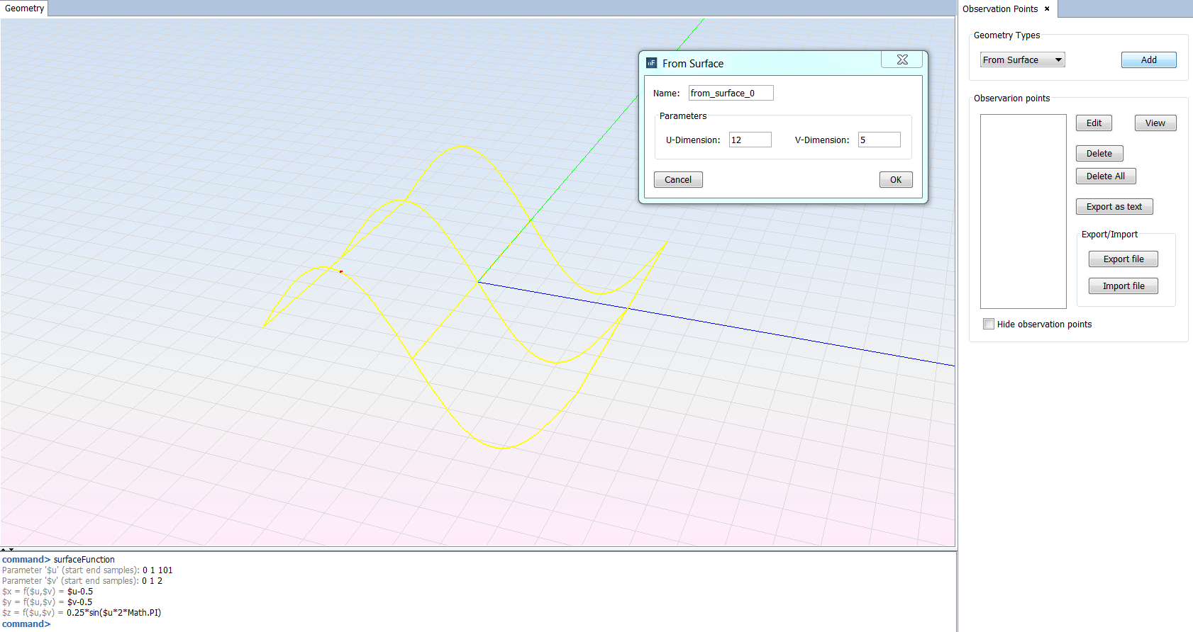 Click on the "OK" button to insert the observation points from the surface, or abort the insertion by clicking on the "Cancel" button.