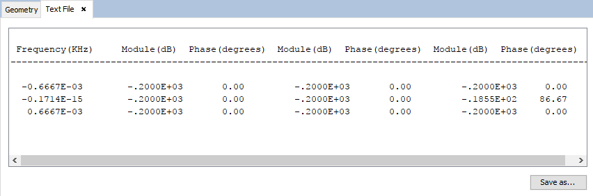 In this panel, the user can select the step, the source and the observation point the results will be shown for. Then, the text file is generated and opened with newFASANT text file viewer.