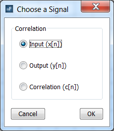 Only when the CDMA signal has been selected, the window represented below asks the selection of the Correlation Signal to be plotted with the following options.