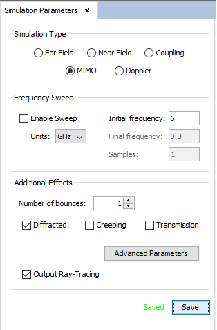 Select Simulation - Parameters option, click on the MIMO button and set the parameters.