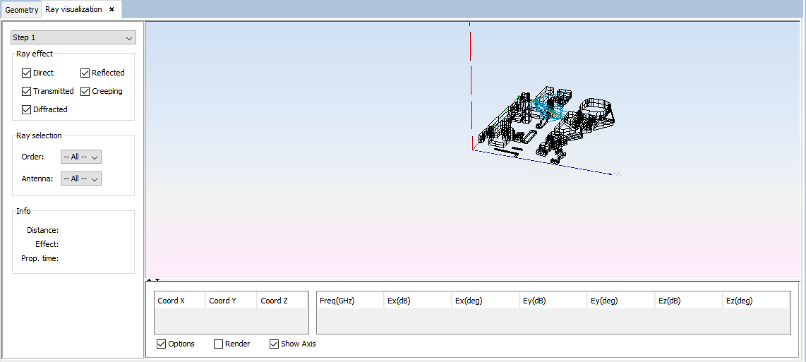 The ray tracing can be visualized by clicking Show Results – View Ray.