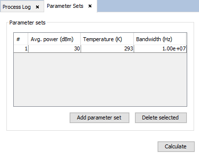 In this panel, the user has to specify the transmitted power per antenna, the temperature, and the bandwidth. In this example, the user has to set up the values shown in the above figure.