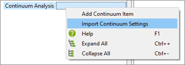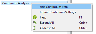 In the Analyst Tree, right-click Continuum Analysis and select Add Continuum Item.