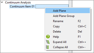 Right-click on Continuum Item and select either Add Plane or Add Plane Group.