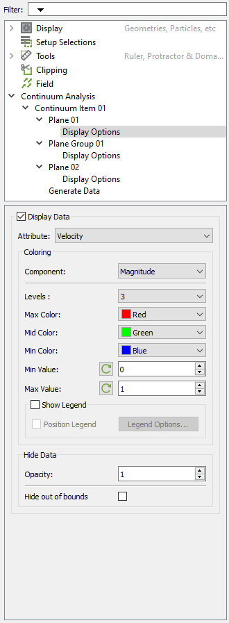 To display the continuum data, select either the Display Options within any plane or plane group to edit the settings of those individual planes or plane groups.