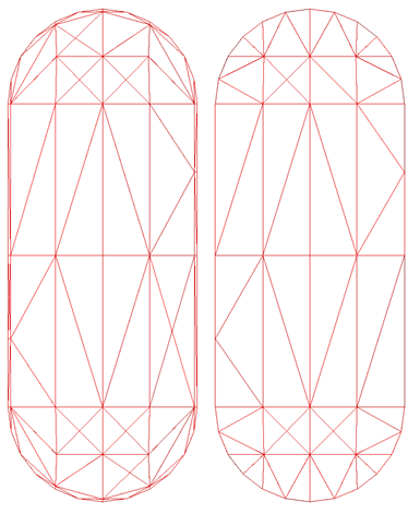 When importing a custom particle shape there is a Delaunay meshing process that is carried out to ensure the particle is convex. This is based on Delaunay meshing and will generate a shape compatible with the EDEM Polyhedral solver. This option should be used on shapes which are near convex, but through the meshing process or CAD generation have small amounts of concavity. Delaunay triangulation is carried out to maximize the minimum angle of each triangle. This results in a mesh that doesn’t contain high aspect ratio or slither triangles and often reduces the number of triangle elements.