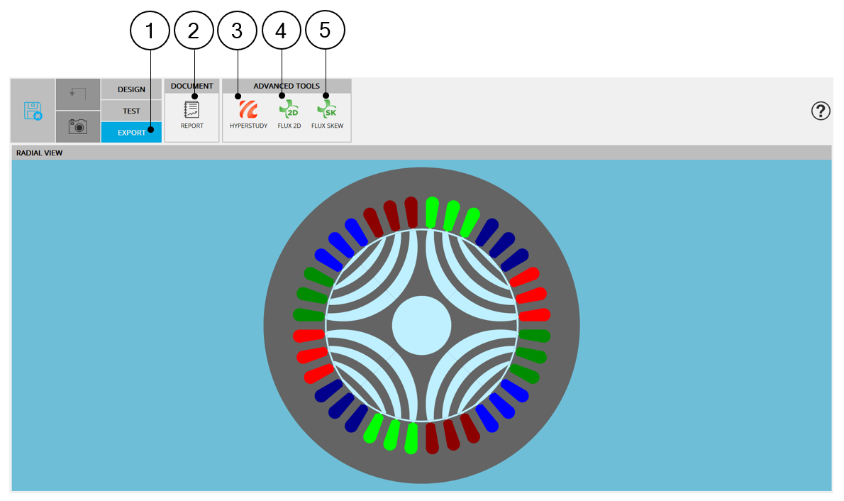 Then, the function “FLUX2D” allows to build and export a model in Altair® Flux® 2D environment for performing advanced studies either with magneto static or transient applications.