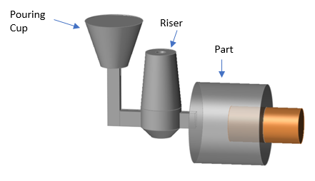 Figure 1. Example of a Riser Positioned in Relation to the Part and Pouring Cup