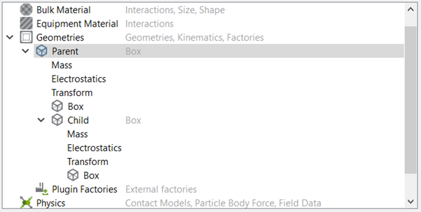 Once the hierarchy has been defined in the tree it can be identified by the indent relative to the parent Geometry as can be seen below: