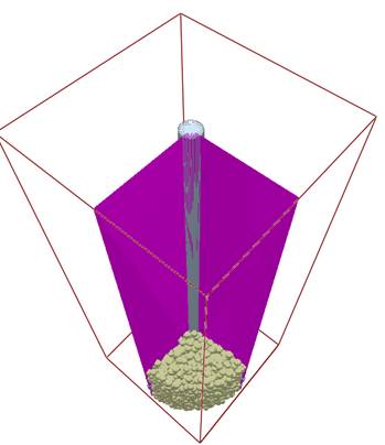 A central element (cylinder) is required at the mid-point of the boundary. At the center point of the boundary it is possible for a particle to pass through the boundary and contact itself, which can lead to particle explosions. This can be prevented through definition of a geometry section at the center of the boundary.