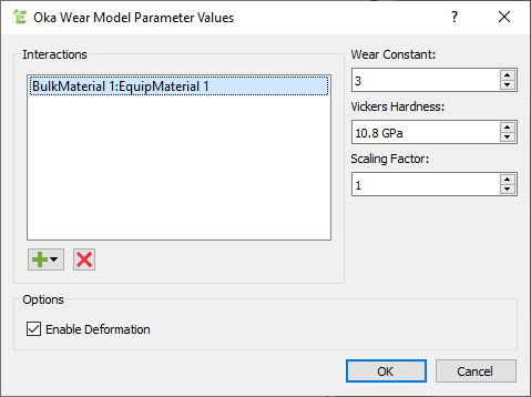 | Particle to Geometry | Assign a Wear Constant, Vickers Hardness value for each Equipment Material-Particle interaction and Scaling Factor (if Deformation enabled). | Last |