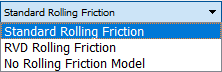 Rotational resistance and energy loss during rotation is also significant, most models include a Rolling Friction component to account for the materials resistance to rolling. Only one rolling friction model can be added per simulation.