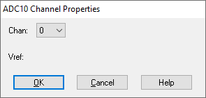 Vref: Indicates the reference voltage for the unit. If you have selected a CPU subtype with ADC 10-bit precision on the MSP430, the Vref text box is dimmed.