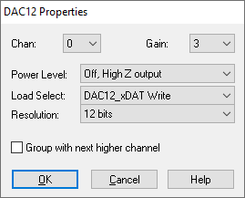 Power Level: Select the power level. The more power you use, the faster the DAC12 module responds.