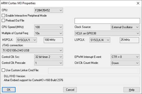 Control Clk Src: Sets the periodic sampling interrupt source for the main control loop in Embed.