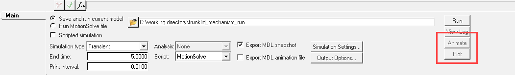 Once the run is successfully complete, both the Animate and Plot buttons are