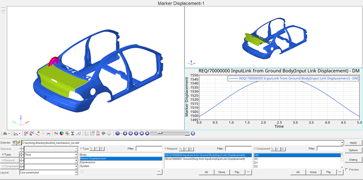 Learn to import MotionSolve results (plot) files for plotting curves, plot multiple curves in one window, plot multiple curves in different