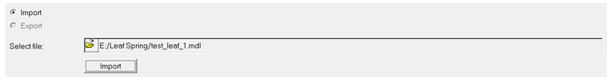 The Leaf Spring Builder saves the data in an .lpf file. The file can be saved and loaded in the Leaf Spring Builder interface. The file is readable and is in TiemOrbit format. To make model changes, edit the spring data in the interface and build a new leaf spring system definition.