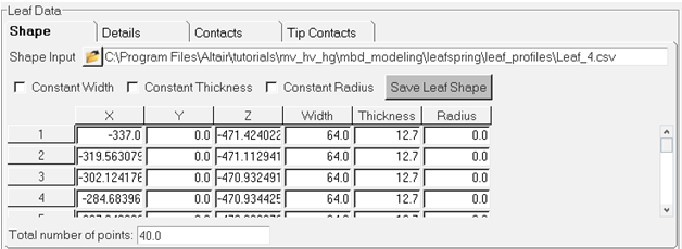 The .csv files used in this tutorial contain coordinate pairs that represent the geometry of the centerline of the leaf. The leaf in this tutorial was created by measuring geometry from a light truck rear suspension. The rear suspension in this example has a GAWR of 3950 lbs.