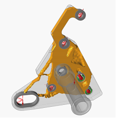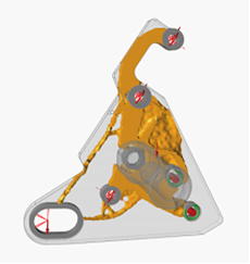 Figure 4. Mass Target of 20%This means the resulting shape's load path is not well-defined. Comparing the three results, the one with the mass target of 30% would be the best starting point for your design, as it provides the lowest mass that connects al off the support and force locations.