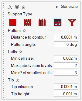 マイクロダイアログのアイコンを使用してサポートの形状を設定します。オプションは、十字型断面、プラス型断面、四角形断面、円形断面です。