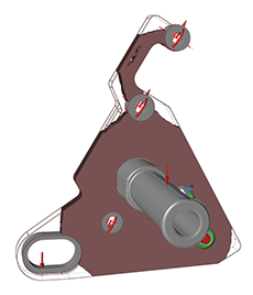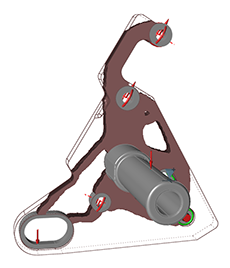 - 変位制約 – 変位制約ツールを使用して適用します。注: 最適化が完了すると、質量を最小化する最適な結果は、通常、形状比較のトポロジースライダーを右端にドラッグすると得られます。