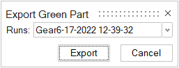 녹색 파트 녹색 파트를 .stl 파일로 내보냅니다. 여러 시뮬레이션 실행 중에서 선택할 수 있습니다. 먼저 파트에 대한 보상 해석을 실행하십시오. 보상 해석에서는 소결 과정에서 원하는 모양으로 정착될 녹색 파트의 모양을 계산합니다. 녹색 파트 아이콘을 클릭하여 마이크로 대화 상자를 엽니다. 드롭다운 목록에서 실행을 선택합니다. 내보내기 버튼을 클릭합니다. .stl 파일의 이름을 지정하고 저장합니다.