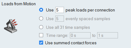 - 모든 # 시간 샘플 사용: 이 옵션은 기존의 모션 해석 실행에서 모든 시간 샘플을 추출합니다. 이것은 전체 모션 사이클에서 하중을 캡쳐할 때 유용합니다.