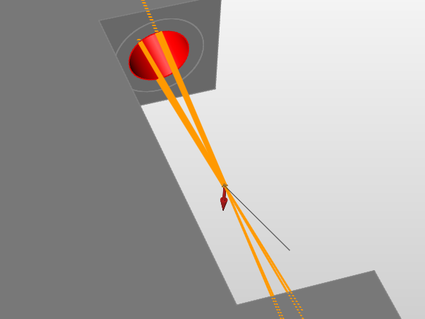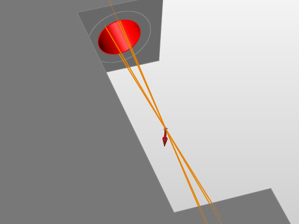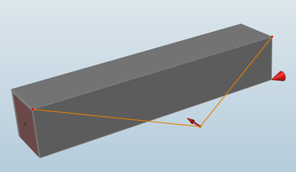 커넥터는 점, 엣지 또는 면을 서로 연결하며, 중점에서 방사되는 빨간선으로 표시됩니다. 이것은 일반적으로 2개의 파트를 서로 연결하거나 멀리 떨어진 곳에 하중이나 지지부를 적용하기 위해 사용됩니다.