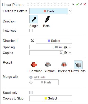 - 파트주: 패턴의 모든 파트를 원본 파트의 인스턴스로 만들려면 인스턴스를 켭니다.