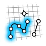 - 방향을 접선 또는 수직으로 정의하려면, 마지막으로 배치한 점에 있는 파란색 화살표 중 하나 위로 마우스를 가져갑니다.