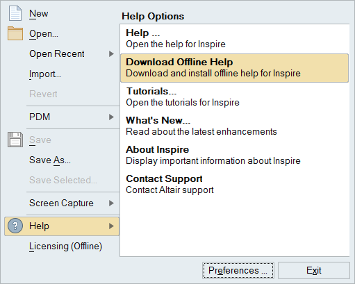 파일 메뉴에서 워크스테이션에 로컬로 도움말을 다운로드하고 설치합니다.