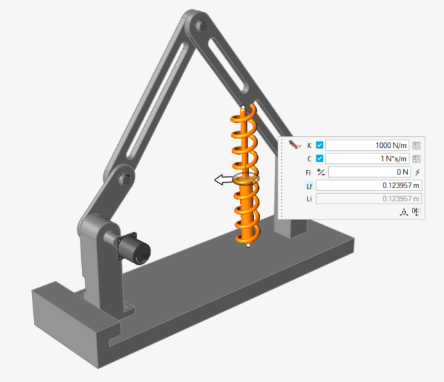 了解如何创建连接、添加转动电机和弹簧阻尼器力,以及运行运动分析。