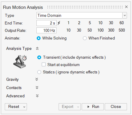 点击“分析运动”工具上的快速运行按钮,以查看运动中的模型。